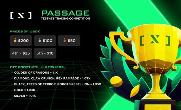 Passage 的设计专门针对波动性市场,是一种简化的衍生品产品,这种新的玩法能够针对所有的市场条件。价格走势停滞不前?这时就可以选择 Passage Stay In 产品,来玩转短期波动性。感觉价格即将突破?这时可以选择Break Out 的 Passage 产品来针对长期波动性持仓。除投机用法之外,Passage 还可以用来对冲永续合约的持仓和现货,对任何交易者来说都是十分宝贵的工具,且使用便利,要比传统的期权产品做对冲设置更为简单。Passage 的收益基于时间计算,因此Stay In Passage 价格维持在区间内的时间越长, 或 Break Out Passage 的价格越早突破区间,持仓的杠杆就能加持越高。