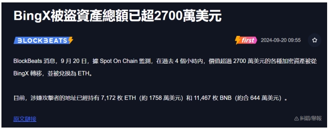 從市場整體氛圍來看,這次事件來的實在是太不是時候了。在降息消息傳來之前,全球經濟的緊縮政策一直壓制加密市場的表現,投資人情緒相對低迷。而降息帶來的利多本來是個重要的轉捩點,市場情緒剛開始回暖,資金流動性也逐漸恢復,正準備迎接一波上漲行情。但就在這個關鍵時刻,BingX的安全問題成了市場的「攪局者」。