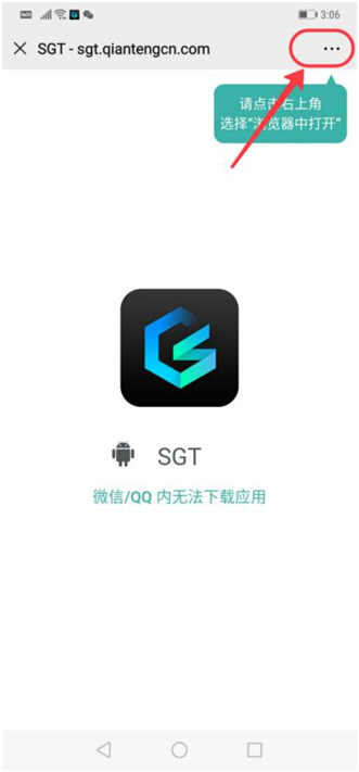 第二步、点击右上角“...”,在浏览器打开进行安装,如下图: