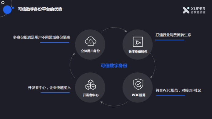 可信数字身份平台则为企业、用户提供去中心化的数字身份,保证数字身份的可控,解决企业和用户隐私泄露难题。同时可以形成更加丰富的用户画像,以多身份标签(VIP认证、特权认证、资产认证等)和一个ID行天下,在金融交易KYC、交易所、智慧城市、物联网等场景应用。
